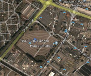 Luftbild vom heute Überbauten , verfallenen Autokino Pulheim